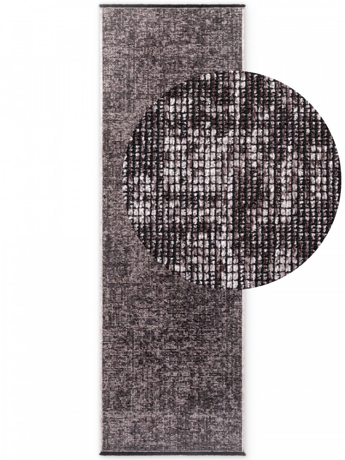 Hnědý běhoun vnáší do interiéru hřejivou atmosféru a jemný nádech elegance. Jeho povrch s nízkým střiženým vlasem působí hladce a vytváří zajímavý efekt drobných „dlaždiček“, který ožívá při každém dopadu světla. Kratší strany zdobí hravé třásně dodávající koberci lehkost a šmrnc, zatímco delší jsou pečlivě obšité pro čistý a upravený vzhled. Odolný a snadno udržovatelný materiál zaručuje, že si koberec svůj kouzelný charakter udrží i v rušných domácnostech.