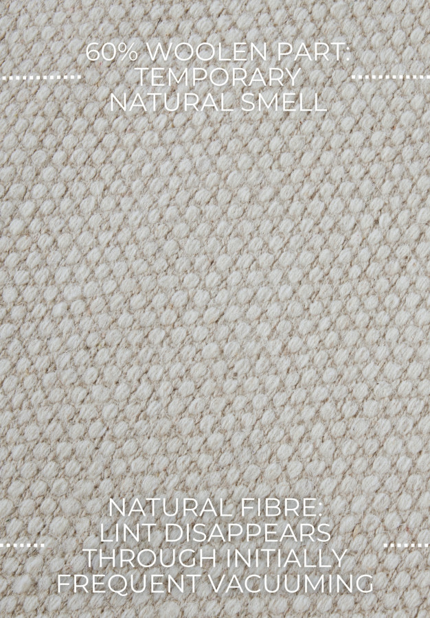Běhoun v krémově bílém odstínu přinese do každého interiéru jemnost a eleganci, která okouzlí na první pohled. Díky směsi vlny a bavlny nabízí teplo a pohodlí, zatímco středně vysoký vlas zajišťuje odolnost a jedinečnou strukturu. Snadný úklid je pak zaručen kompatibilitou s robotickými vysavači, což usnadňuje každodenní péči.