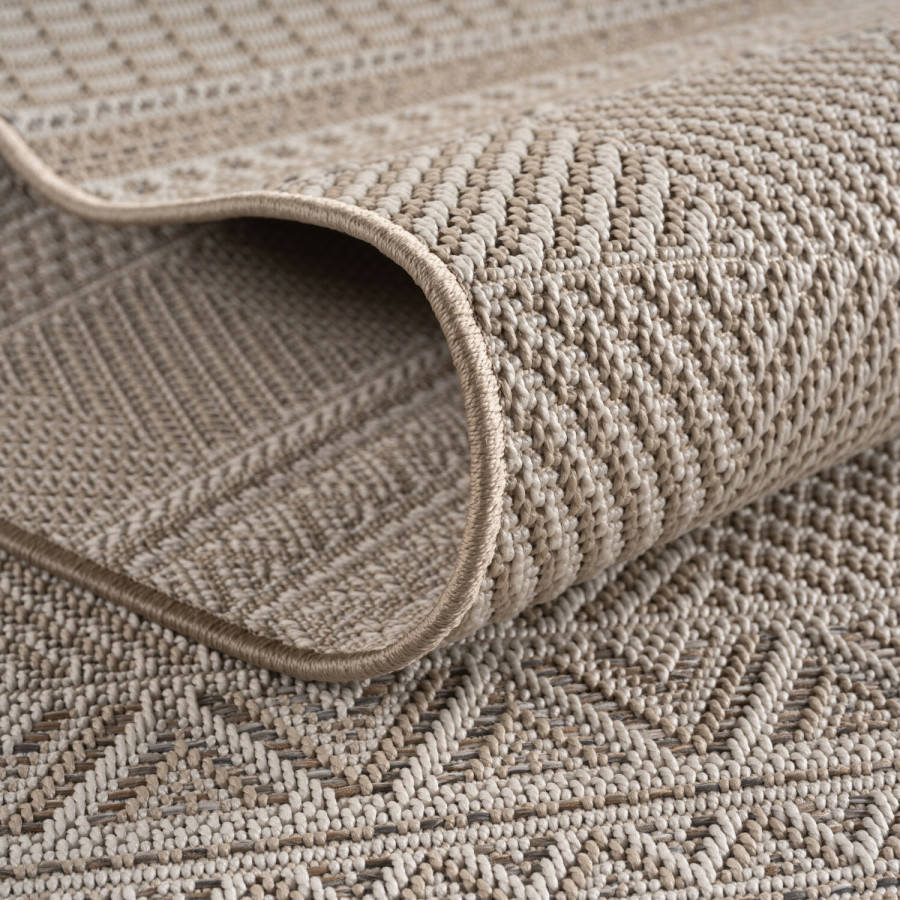 Běhoun Desert 1302 v béžové barvě a v obdélníkovém tvaru je vyrobený ze syntetického (vegan) materiálu, který je odolný proti skvrnám a nenáročný na údržbu. Tento běhoun udělá parádu nejen v dlouhých chodbách, ale i v kuchyni či ložnici; zjemní kroky, ochrání podlahu a opticky protáhne prostor. Geometrické vzory dodají místnosti strukturu a moderní charakter, aniž by prostor působil rušivě. Navíc je vhodný i do exteriéru, je kompatibilní s robotickými vysavači, je vhodný na podlahové topení, poskytuje příjemnou tepelnou a zvukovou izolaci, je obšitý ze všech stran, je antistatický a má certifikaci Öeko-Tex.