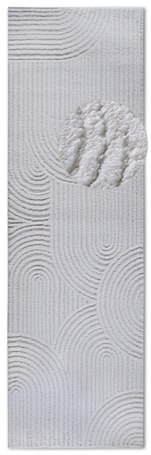 Přineste do svého domova eleganci a dynamiku s krémově bílým běhounem, jehož 3D motiv vytváří úchvatný vizuální efekt. Vysoký shaggy vlas zajišťuje neuvěřitelnou jemnost a pohodlí při každém kroku, takže se budete cítit jako v bavlnce. Navíc je kompatibilní s podlahovým vytápěním, což vám umožní užívat si teplo a komfort i v zimních měsících.