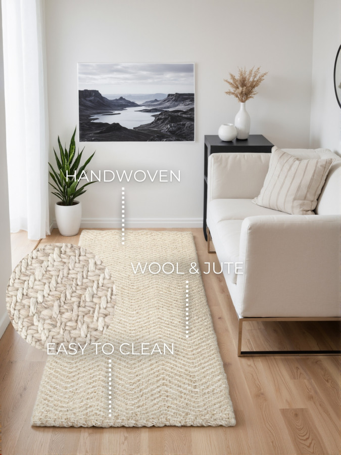 Ručně tkaný běhoun Majoli z kolekce Elle Decoration v krémově bílé barvě přináší do interiéru skandinávský klid a přírodní eleganci. Kombinace vlny a juty zajišťuje měkkost, odolnost i nadčasový vzhled, který snadno zapadne do každého stylu bydlení.