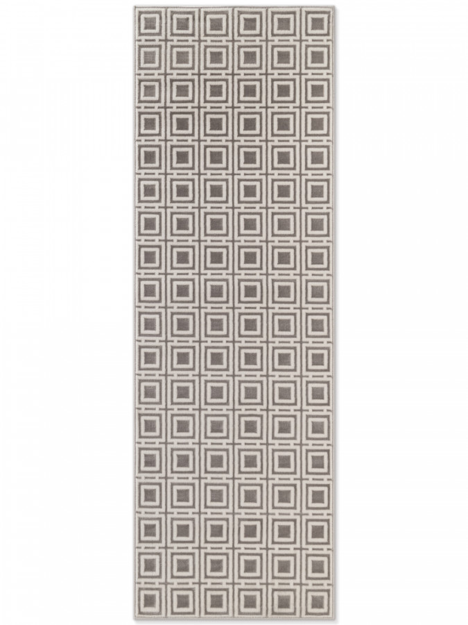 Běhoun v kombinaci krémově bílé a šedé barvy zaujme na první pohled svým originálním geometrickým motivem, který vnese do každého prostoru moderní nádech. Díky své neutrální barevnosti se snadno přizpůsobí různým stylům interiéru a elegantně doplní obývací pokoj či ložnici. Střižený vlas je příjemný na dotek, což z něj dělá nejen stylový, ale i praktický prvek domácnosti. Je vhodný i pro podlahové vytápění a skvěle si rozumí s robotickými vysavači.