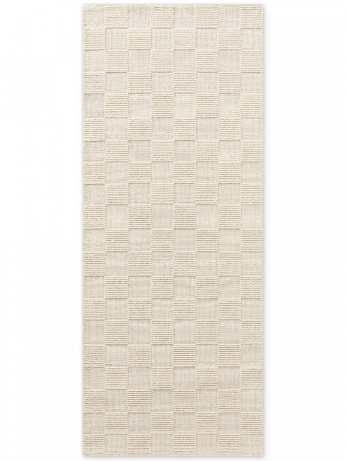 Bílý běhoun se čtvercovým 3D vzorem připomíná šachovnici a do interiéru vnáší moderní a čistý vzhled. Je ručně tkaný z prvotřídní vlny, což mu dodává přírodní charakter a výjimečnou odolnost. Jemná textura působí sofistikovaně a současně poskytuje praktické výhody, jako je tepelný komfort a zvuková izolace. Díky snadné údržbě a univerzálnímu designu se skvěle hodí do obývacího pokoje či ložnice.