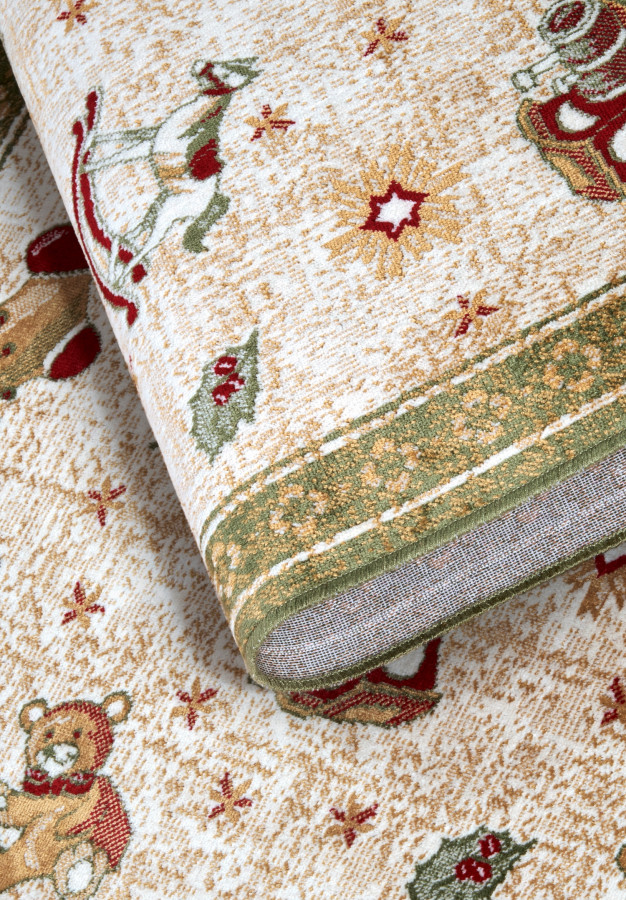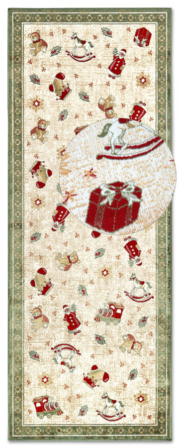Vneste do svého domova kouzlo Vánoc s tímto běhounem, který je jako stvořený pro sváteční chvíle! Jeho béžové pozadí zdobí nostalgické vánoční motivy, které vykouzlí útulnou atmosféru, zatímco elegantní olivově zelené lemování mu dodává stylový nádech. Kromě vzhledu vás potěší i praktičností – má protiskluzovou úpravu, která ho lépe drží na podkladu, a je ideální i pro vytápěné podlahy. Stačí ho jen položit a nechat se unášet vánočním duchem, který tento běhoun přinese.