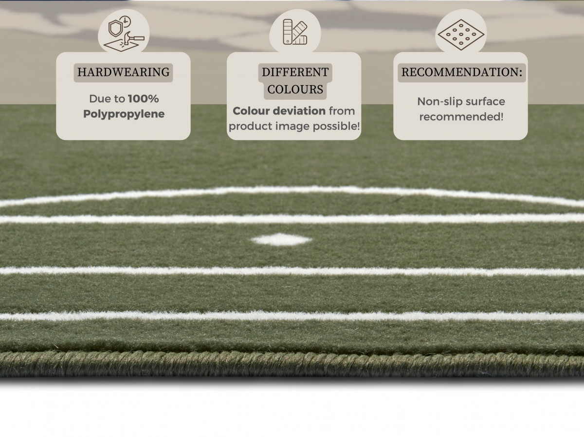 Tento povedený koberec simuluje fotbalové hřiště, takže se skvěle hodí především do pokojů malých fotbalistů. Vyrábí se z odolného polypropylenu a má středně vysoký střižený vlas. Kromě poutavého motiv se proto může pyšnit měkkým a příjemným povrchem. Dále má antistatickou úpravu a je obšitý po celém obvodu.