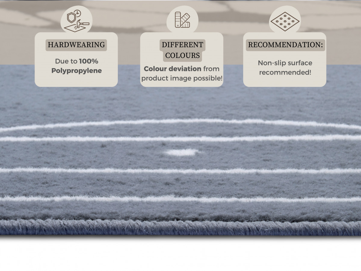 Šedý koberec simulující fotbalové hřiště je skvělou volbou do pokojů malých fotbalistů. Jeho velikou předností je měkký a příjemný povrch, což zajišťuje středně vysoký střižený vlas. Mezi další praktické vlastnosti patří odolnost, obšití po celém obvodu a snadná údržba.