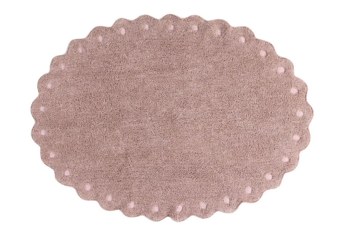 Dětský kusový koberec Pinecone Vintage Nude v růžové barvě a oválném tvaru je vyrobený z přírodní bavlny, která je prodyšná, hebká a snadno pratelná. Pro klid rodičů a radost dětí promění podlahu v měkké a bezpečné hřiště v dětském i obývacím pokoji; prodyšná bavlna je jemná k citlivé pokožce a snadno se udržuje. dobře tlumí hluk.