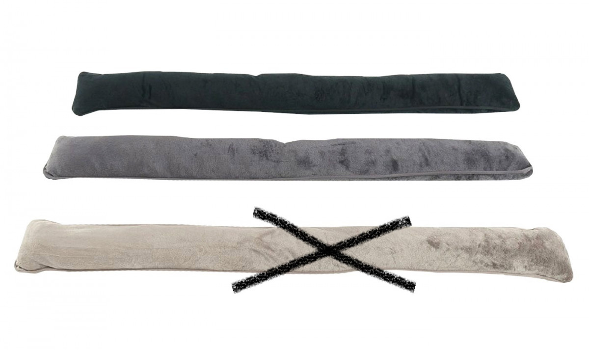 Plyšový povrch bránící oděru dveří. Náplň pro její dobrou funkci je pak 765 gramů písku.