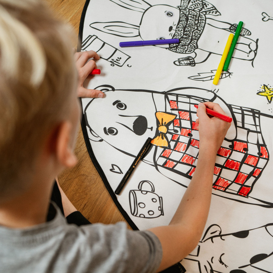 Speciální kruhový dětský koberec, který si děti mohou sami vybarvit! Tak přesně s takovým konceptem přichází česká společnost Butter Kings, která tyto originální hrací koberce vyrábí z bavlny přímo v České republice. Sháníte-li tedy kvalitní a zároveň originální a užitečný dárek pro Vaše ratolesti, pak je pro Vás netradiční koberec Happy Friends jako stvořený. Po vybarvení ho lze jednoduše vyprat v pračce a znovu vymalovat. Obšitý je po celém obvodu a fixy jsou součástí balení (celkem 6 ks). Pokud by Vám dopsaly, není nic snazšího, než v papírnictví dokoupit nové pratelné fixy za pár korun.