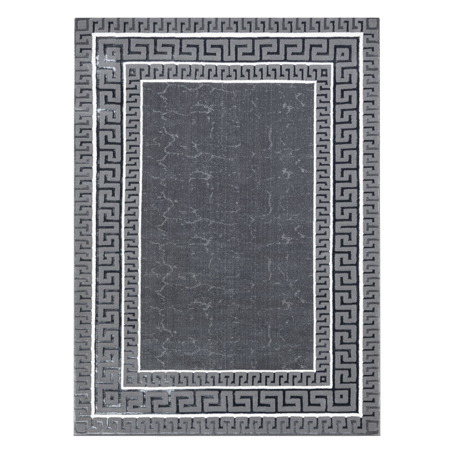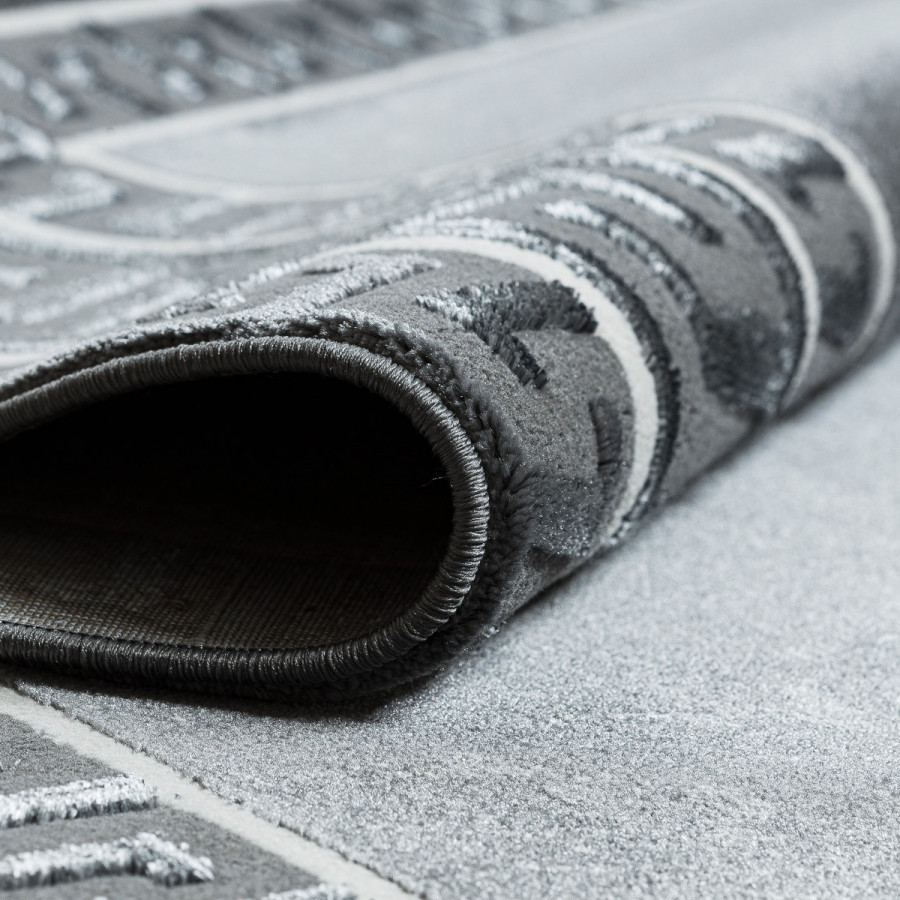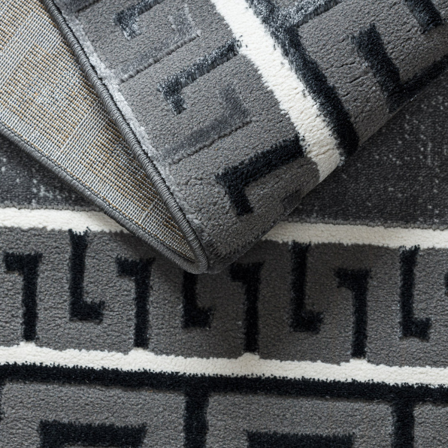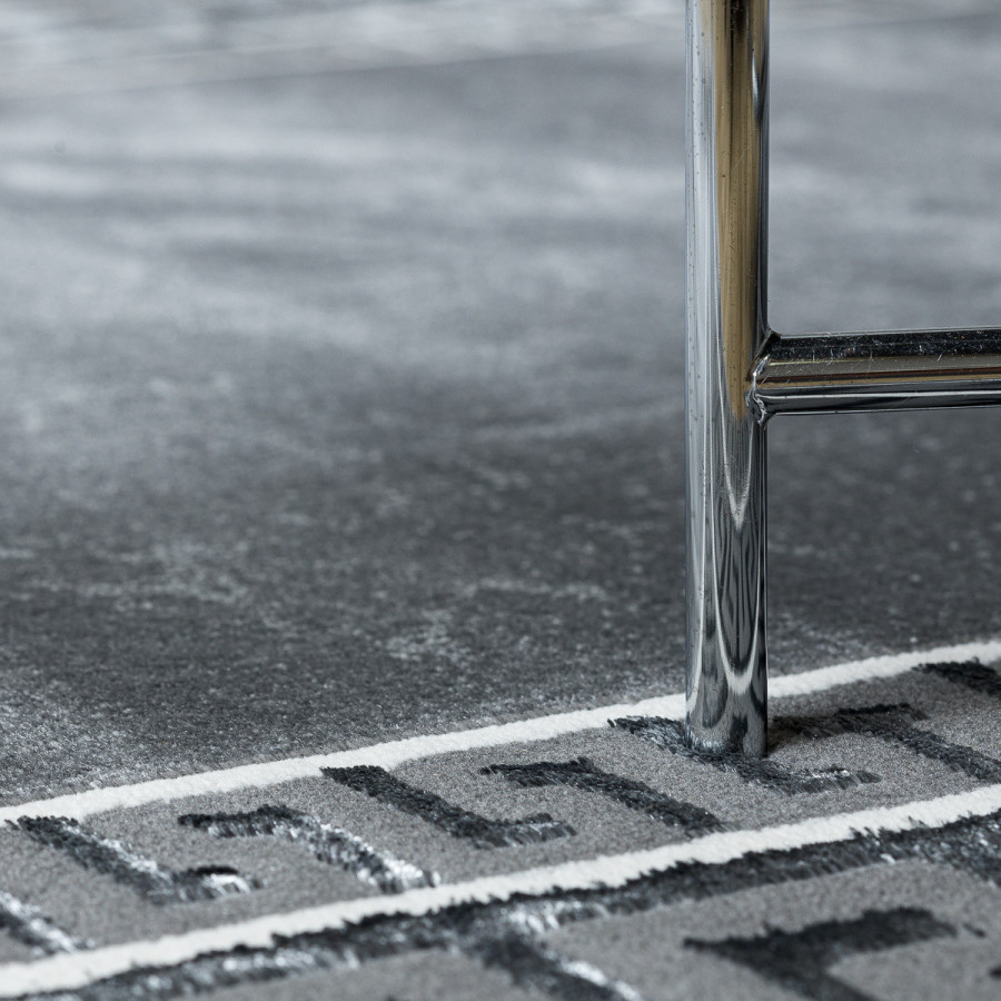 Kusový koberec Allure 1960 grey je ukázkou moderní elegance v tmavém provedení. Grafitově šedý podklad doplňuje výrazná bordura s motivem řeckého klíče v kontrastní černo-bílé kombinaci. Tento design působí odvážně, noblesně a dokáže dodat interiéru sofistikovanou atmosféru s nádechem luxusu. Koberec je vyrobený ze směsi 60 % polypropylenu a 40 % polyesteru, což zajišťuje jeho odolnost i příjemnou hebkost. Dvě výšky vlasu vytvářejí jemný 3D efekt, který podtrhuje strukturu bordury i detailní vzor. Certifikace OEKO-TEX garantuje zdravotní nezávadnost.