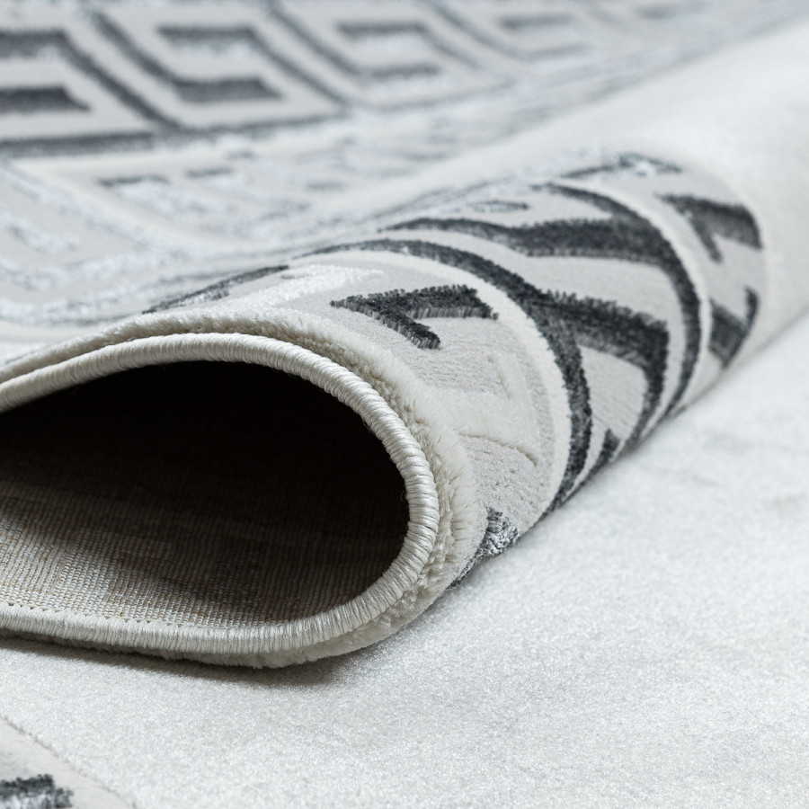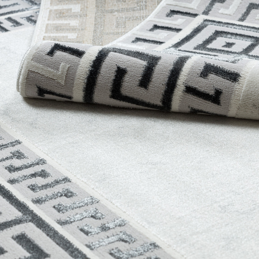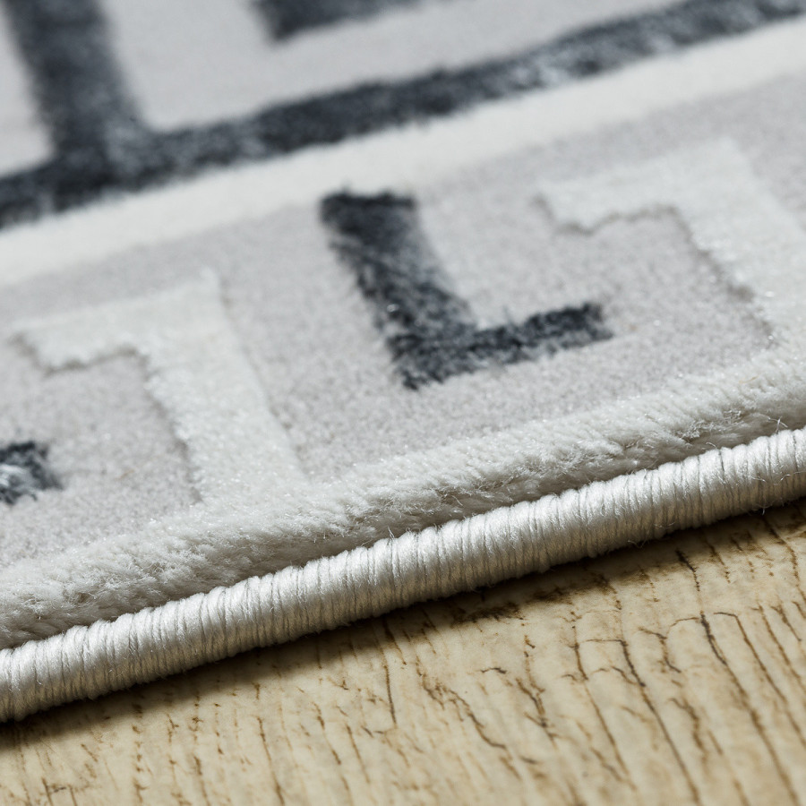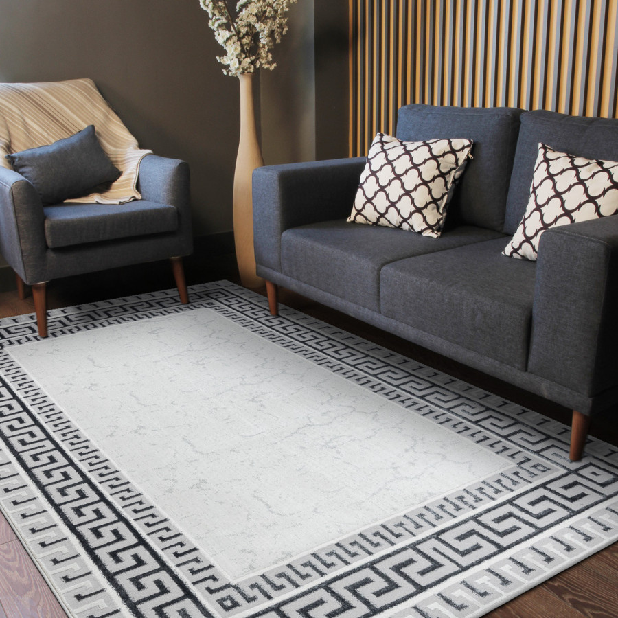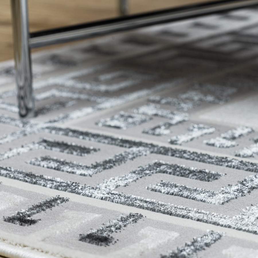Koberec Allure 1960 white/grey se skvěle hodí do obývacího pokoje jako reprezentativní prvek, do ložnice pro vytvoření harmonického prostředí i do pracovny, kde podpoří elegantní a seriózní atmosféru. Působí moderně a zároveň nadčasově díky elegantnímu spojení geometrie a jemného mramorového efektu. Světlý podklad s decentní kresbou kontrastuje s výraznou bordurou v šedo-černém provedení, která připomíná klasický motiv řeckého klíče. Koberec je vyrobený ze směsi 60 % polypropylenu a 40 % polyesteru, takže je pevný, odolný a zároveň měkký na dotek. Dvě úrovně vlasu vytvářejí jemný 3D efekt, který podtrhuje strukturu a dodává koberci vizuální hloubku. Certifikace OEKO-TEX garantuje zdravotní nezávadnost, koberec je proto bezpečný i pro domácnosti s dětmi či alergiky. Samozřejmostí je i možnost použití s podlahovým vytápěním.