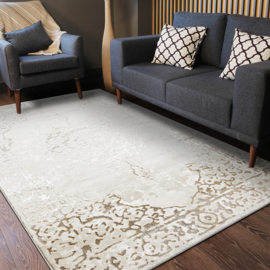 Koberec Allure 1961 cream/gold září svou decentní elegancí a přirozenou harmonií. Jemný béžový podklad v kombinaci s ornamentálním vzorem v hnědých tónech působí teple a útulně, takže dokáže okamžitě zútulnit každý interiér. Tradiční motiv je zpracovaný v moderním duchu a vytváří dokonalou rovnováhu mezi klasikou a současným designem. Vyrobený je ze směsi 60 % polypropylenu a 40 % polyesteru, což mu dodává odolnost a zároveň příjemně měkký povrch. Dvě výšky vlasu vytvářejí jemný 3D efekt, který podtrhuje reliéfní vzor a dodává koberci hloubku i luxusní vzhled. Díky certifikaci OEKO-TEX je zcela bezpečný pro alergiky i děti a hodí se i k použití s podlahovým vytápěním. Allure 1961 se skvěle vyjímá v obývacím pokoji, kde vnese pocit tepla a pohodlí, v ložnici, kde podpoří klidnou atmosféru, i v pracovně, kde dodá prostorům nádech prestiže.