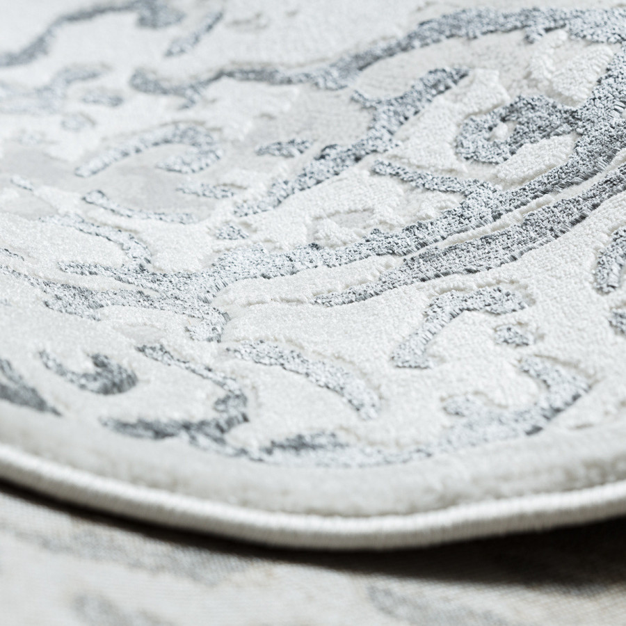 Kusový koberec Allure 1961 white/grey je ztělesněním elegance v moderním pojetí orientálního stylu. Na světlém podkladu vystupuje dekorativní středový motiv v šedo-černém provedení, který působí decentně a přesto výrazně. Celý vzor připomíná klasické orientální ornamenty, ovšem zpracované minimalističtějším, současným způsobem. Koberec je vyrobený ze směsi 60 % polypropylenu a 40 % polyesteru, takže je odolný, měkký a příjemný na dotek. Dvě výšky vlasu vytvářejí jemný 3D efekt, který zvýrazňuje reliéfní kresbu a dodává koberci hloubku i vizuální zajímavost. Díky certifikaci OEKO-TEX je naprosto bezpečný pro domácnosti s dětmi či alergiky.