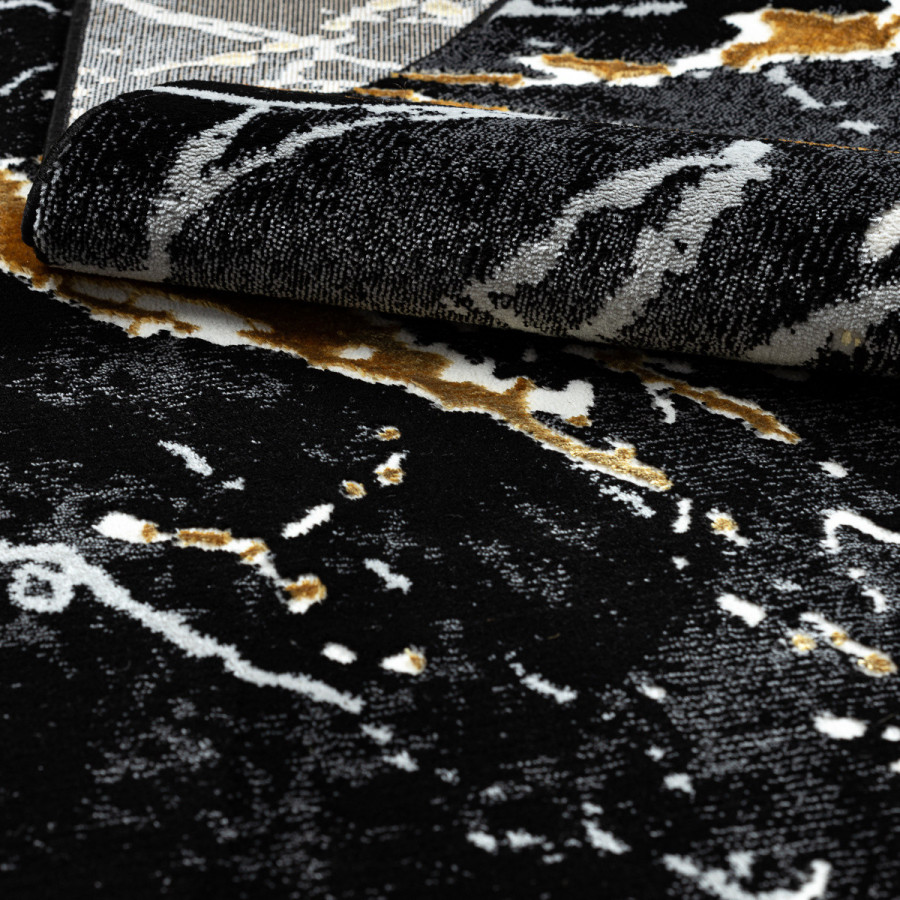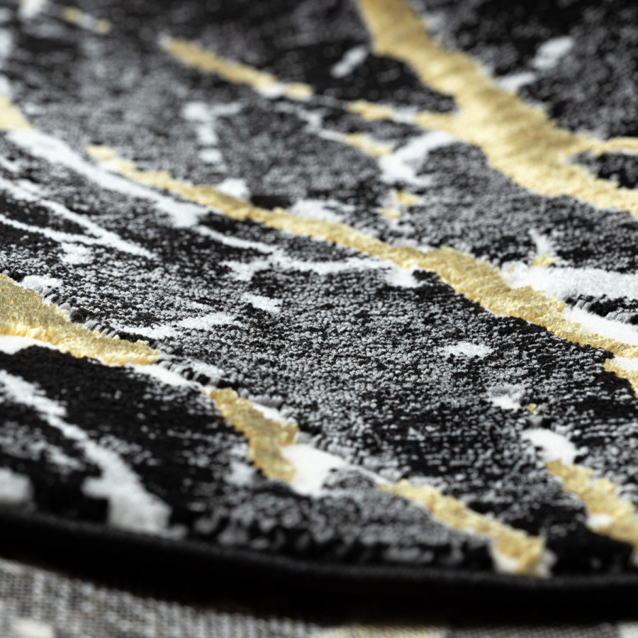 Kusový koberec Allure 1963 black/gold je pro ty, kteří chtějí dodat svému domovu nádech luxusu a odvážného stylu. Černý podklad s výraznou mramorovou kresbou je protkán zlatými a šedými liniemi, které působí jako třpytivé žilkování drahého kamene. Výsledkem je design, který vyzařuje noblesu, eleganci a dramatický šarm. Vlas tvoří směs polypropylenu a polyesteru, díky čemuž je koberec odolný, měkký a snadno se udržuje. Dvě výšky vlasu vytvářejí jemný 3D efekt, který podtrhuje mramorový vzor a dodává mu hloubku i luxusní vzhled. Certifikace OEKO-TEX zaručuje zdravotní nezávadnost a šetrnost k životnímu prostředí, koberec je navíc vhodný i pro použití s podlahovým vytápěním. Allure se skvěle hodí do moderních obývacích pokojů, kde se stane výrazným středobodem, do ložnic pro vytvoření sofistikované atmosféry.