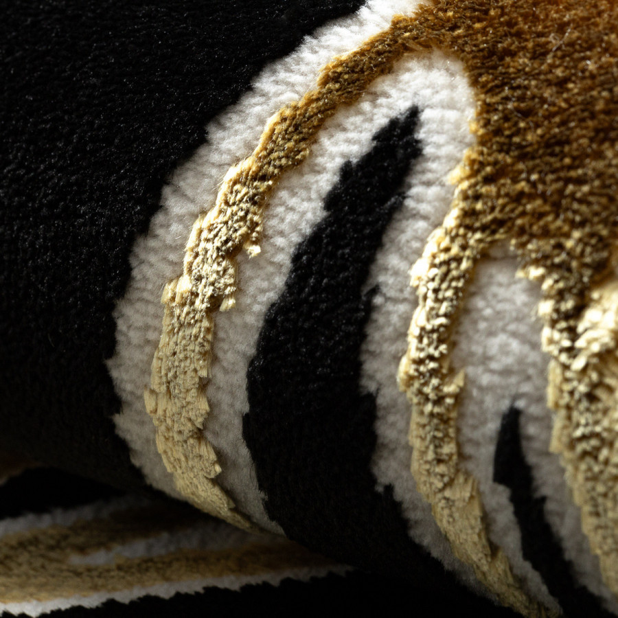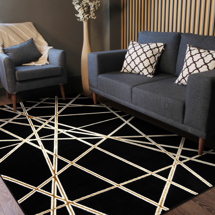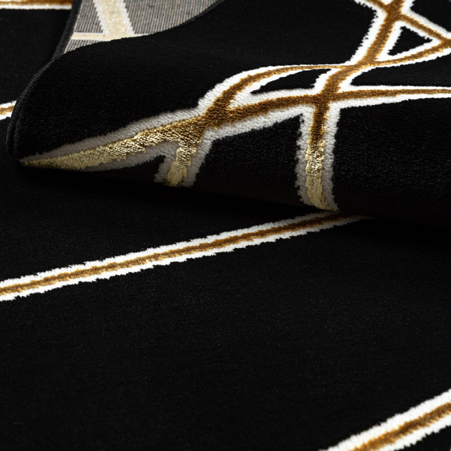Koberec Allure 1964 black/gold je ukázkou moderního designu v té nejstylovější podobě. Černý podklad zdobí zlaté linie, které se kříží v dynamickém geometrickém vzoru připomínajícím světelnou síť. Výsledkem je odvážný a působivý design, který interiéru dodá energii, šmrnc a nádech luxusu. Koberec je vyrobený z polypropylenu a polyesteru, což mu zajišťuje vysokou odolnost i příjemně měkký povrch. Dvě výšky vlasu vytvářejí jemný 3D efekt, který zvýrazňuje geometrické linie a dodává koberci hloubku. Certifikace OEKO-TEX zaručuje zdravotní nezávadnost. Allure se perfektně hodí do moderních obývacích pokojů a pracoven, kde se stane nepřehlédnutelným středobodem, nebo do ložnic, kde vnese elegantní kontrast a atmosféru současného luxusu.