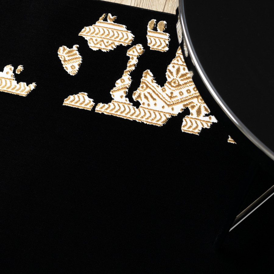 Allure 1965 je ideální volbou pro moderní interiéry, které hledají design s příběhem. Hodí se do obývacího pokoje jako originální středobod, do ložnice pro vytvoření noblesní atmosféry i do reprezentačních prostor, kde podtrhne luxusní charakter místnosti. Na černém podkladu se objevuje zlatý vzor, který působí jako fragmenty starobylé výzdoby. Při bližším pohledu se v těchto detailech odhalují jemné geometrické ornamenty a etnické motivy, které dodávají koberci hloubku a tajemný charakter. Vyrobený z polypropylenu a polyesteru, je odolný, příjemně měkký a snadno se udržuje. Dvě výšky vlasu vytvářejí plastický 3D efekt, díky němuž skrytý vzor ještě více vyniká. Certifikace OEKO-TEX zaručuje zdravotní nezávadnost.