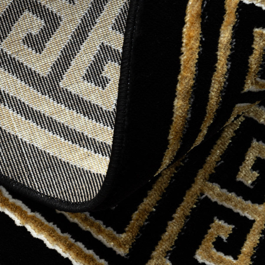 Kruhový koberec Allure 1968 black/gold je pro ty, kteří hledají kombinaci tradice, elegance a výrazného designu. Dominantní černý podklad zdobí opakující se motiv řeckého klíče v zářivě zlatém provedení, který symbolizuje harmonii a nekonečno. Tento ikonický vzor dodává koberci aristokratický charakter a činí z něj skutečný šperk interiéru. Koberec je vyrobený z polypropylenu a polyesteru, což zajišťuje jeho odolnost, měkký povrch a snadnou údržbu. Dvě výšky vlasu vytvářejí jemný 3D efekt, který podtrhuje strukturu vzoru a dodává celkovému vzhledu ještě větší hloubku. Certifikace OEKO-TEX zaručuje zdravotní nezávadnost. Allure je ideální volbou do reprezentačních prostor, moderních obývacích pokojů i stylových ložnic, kde vynikne jeho luxusní vzhled a symbolika.