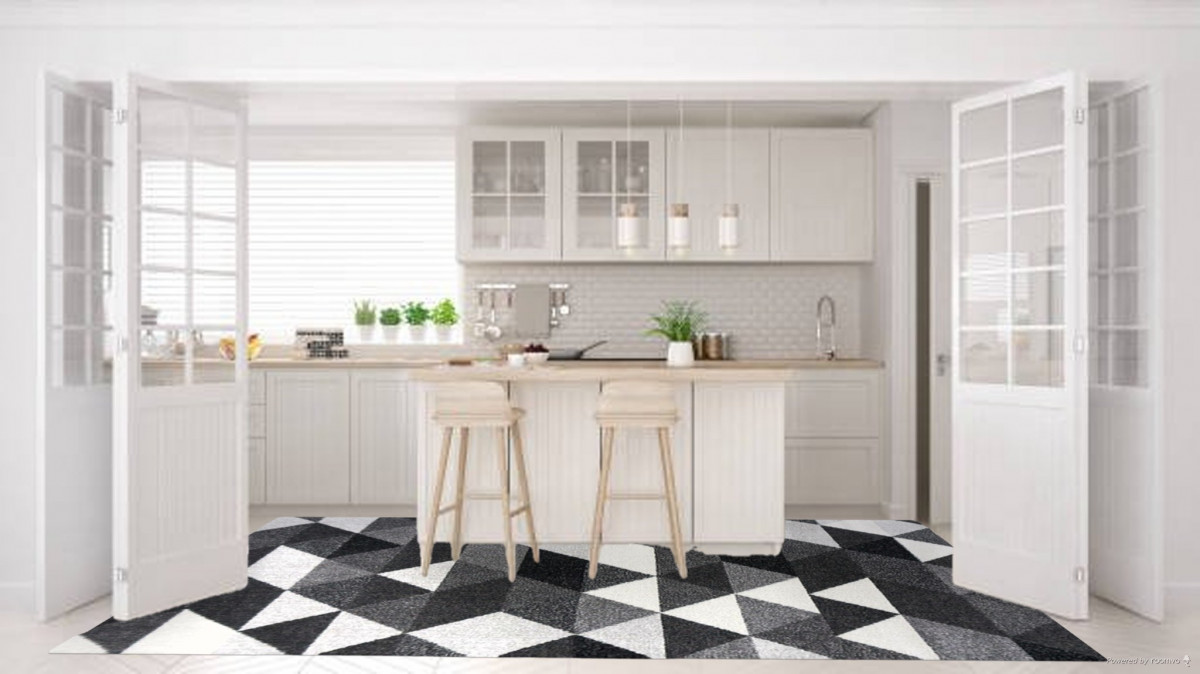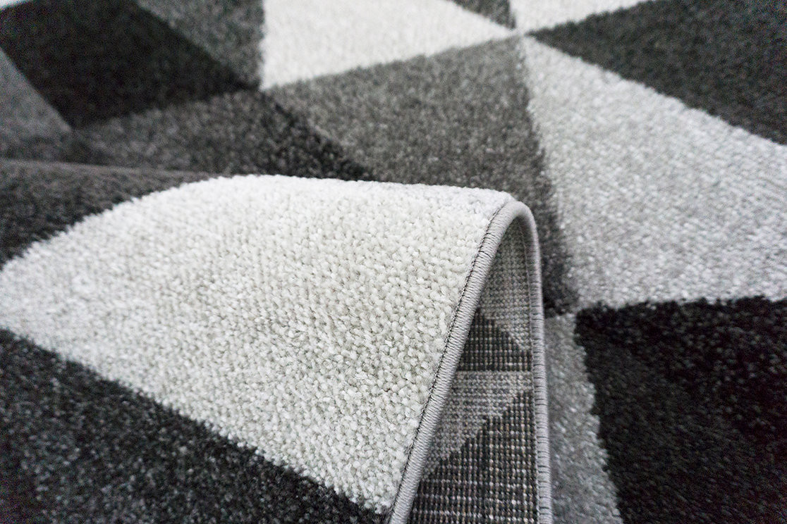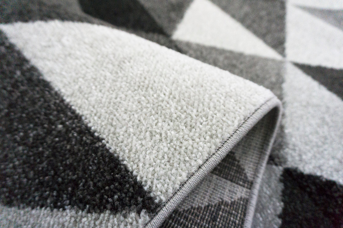Dozdobte si svůj interiér pomocí tohoto parádního kusového koberce. Zdobený je malými trojúhelníčky v různých odstínech šedé barvy. Díky svému barevnému provedení bude skvělým doplňkem každé moderní domácnosti.