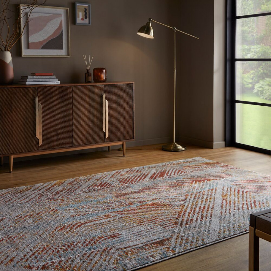 Moderní koberec kombinující křivky a abstraktní pozadí udělá parádu v každém obývacím pokoji. Vyrábí se ze 100% polypropylenu, což je kvalitní a odolný materiál. Krátký střižený vlas zajišťuje komfortní došlap a snadnou údržbu. Koberec můžete vysávat a mokré skvrny otřít suchým a čistým hadříkem.