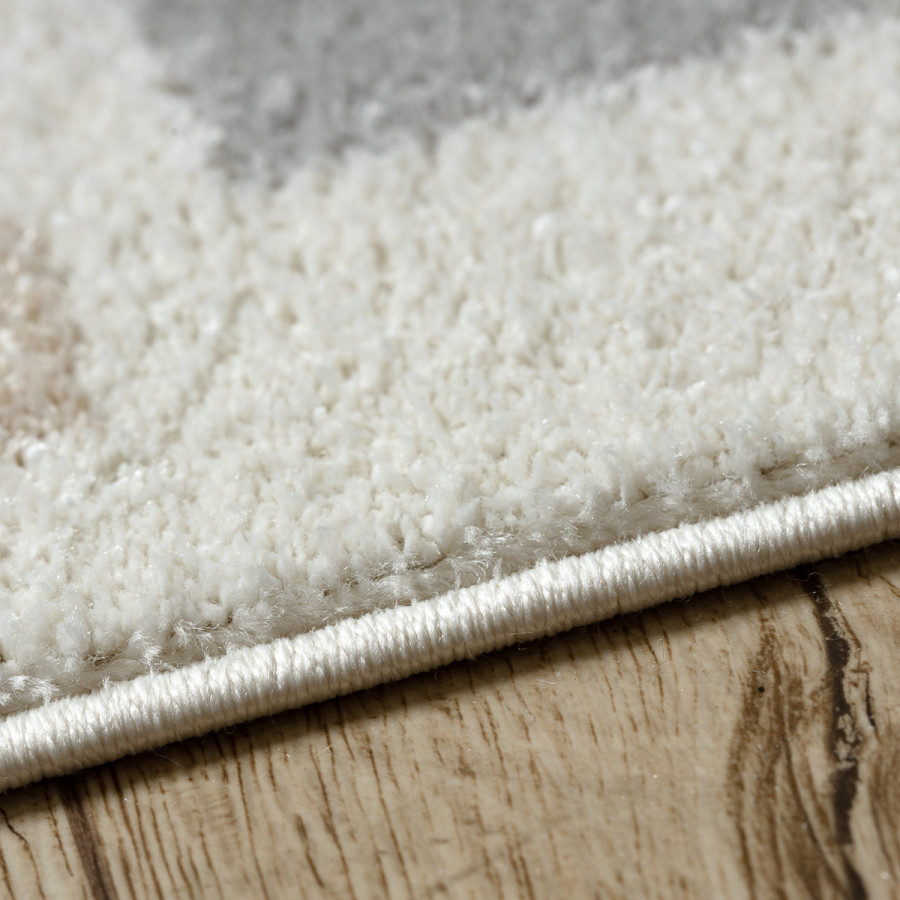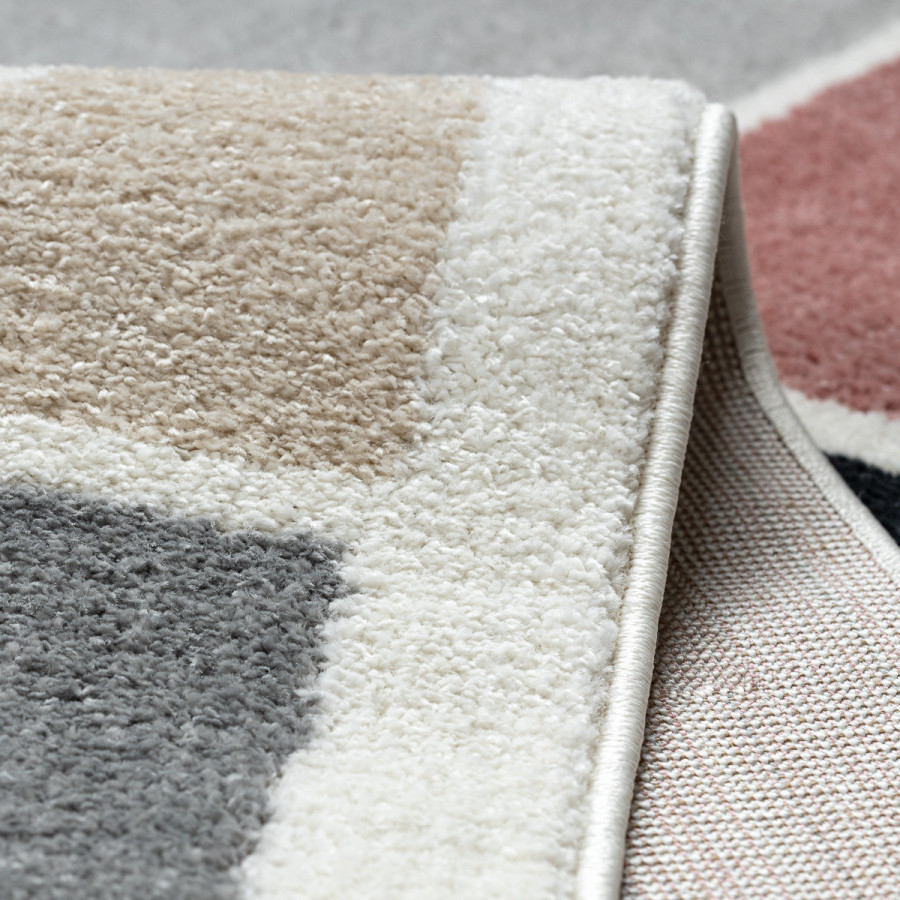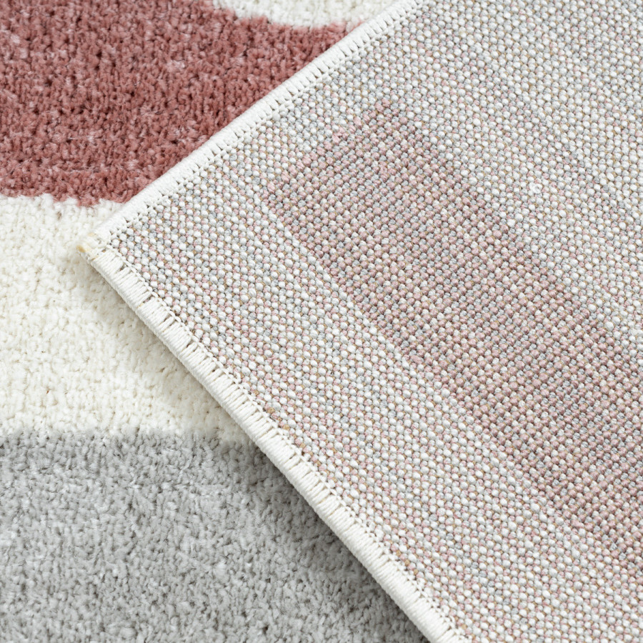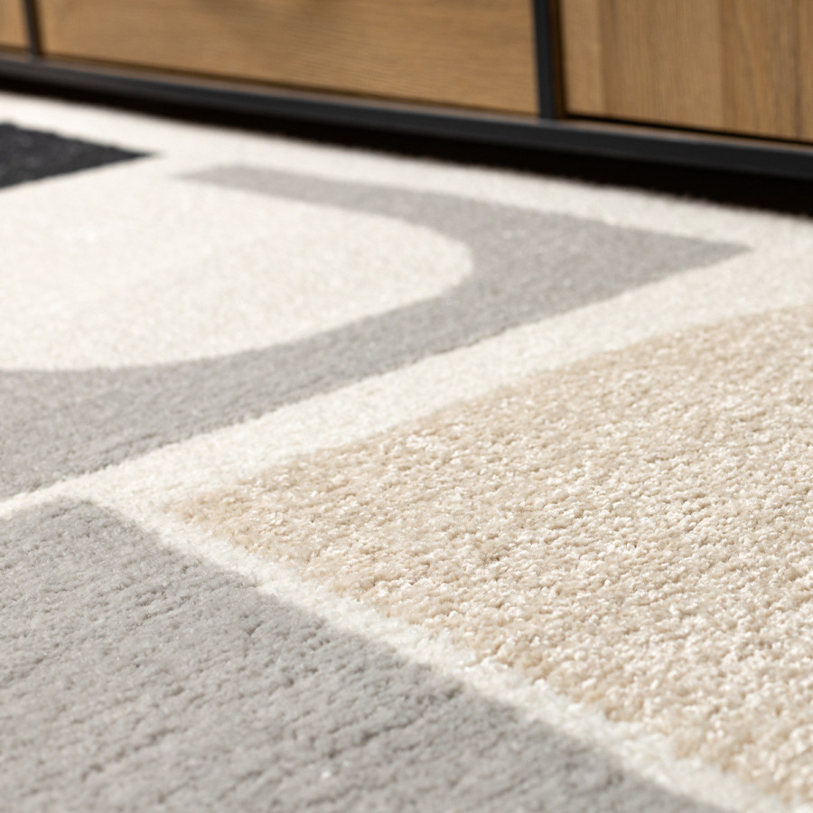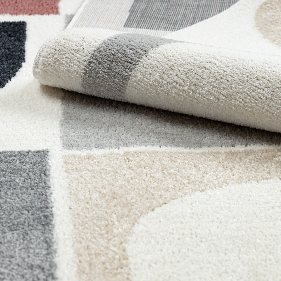 Koberec Fusion 0213 je jako moderní obraz pro vaši podlahu. Hrátky s tvary a barvami, krémová, šedá, béžová, růžová a černá, vytvářejí hravou abstrakci, která se skvěle hodí do interiéru s charakterem. Hustý střižený vlas z polypropylenu Soft je neuvěřitelně jemný a příjemný na dotek, takže se po něm budete rádi procházet naboso. Výška vlasu 10 mm a více než 185 000 bodů na metr čtvereční zaručují nejen komfort, ale i dlouhou životnost. Koberec je po celém obvodu pečlivě obšitý a je certifikován OEKO-TEX, tedy bezpečný pro vaši rodinu i planetu. Skvěle zapadne do moderního obýváku, ložnice nebo studentského pokoje.