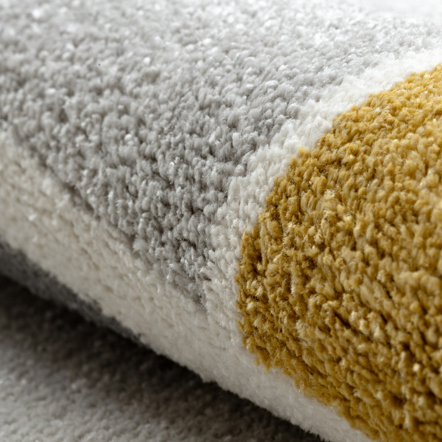 Koberec Fusion 0213 v bílo-žluté variantě je svěží designový kousek, který vdechne energii každé místnosti. Originální abstraktní vzor kombinuje tóny hořčicově žluté, antracitové, béžové a šedé na světlém podkladu, což vytváří efekt moderní geometrie s uměleckým nádechem. Jemný střižený vlas z polypropylenu Soft nabízí luxusní měkkost a komfort při každém kroku. Díky vysoké hustotě je koberec nejen krásný, ale i mimořádně odolný. Poctivě obšitý po celém obvodu a certifikací OEKO-TEX, je vhodný i pro domácnosti s dětmi či alergiky. Skvěle se hodí do moderních interiérů, které chtějí zazářit.