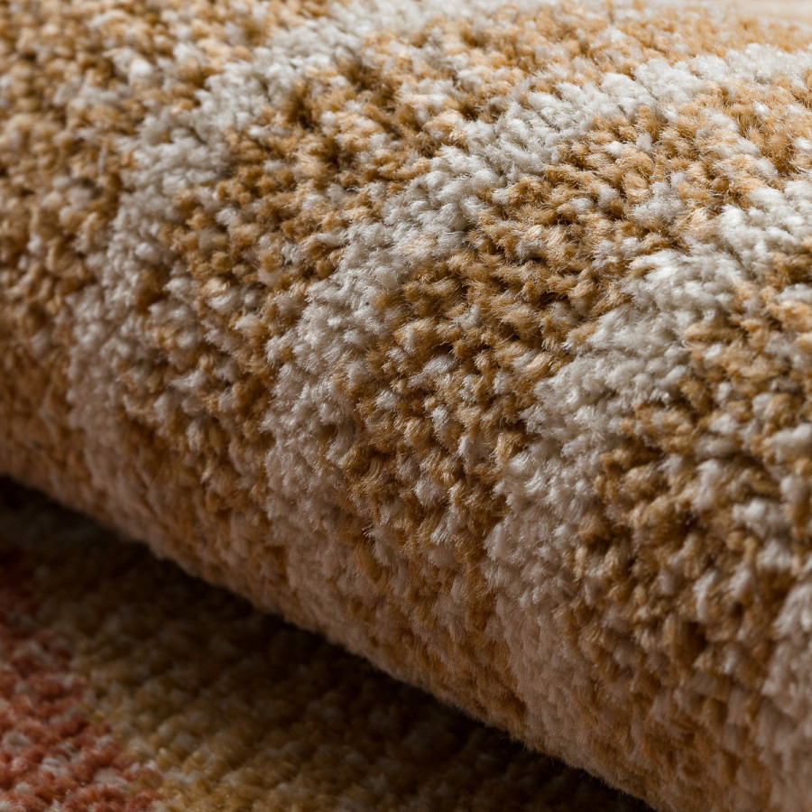 Koberec Fusion 0810 v odstínech béžové a terakoty je jako pohlazení sluncem, syté barvy, jemné linie a organické tvary vytvářejí útulnou atmosféru s moderním nádechem. Materiál z hebkého polypropylenu Soft vás potěší nejen svou měkkostí, ale i snadnou údržbou a dlouhou životností. Barevné oblouky v karamelových, cihlových a béžových tónech dodají místnosti energii i teplo. Precizní obšití po celém obvodu zaručuje stálý tvar a vkusné zakončení. Koberec je šetrný k životnímu prostředí díky certifikaci OEKO-TEX a bez obav ho můžete položit i na podlahové vytápění. Stylový doplněk pro ty, kdo chtějí domov plný barev a pohody.