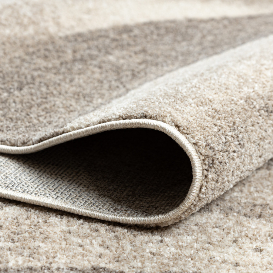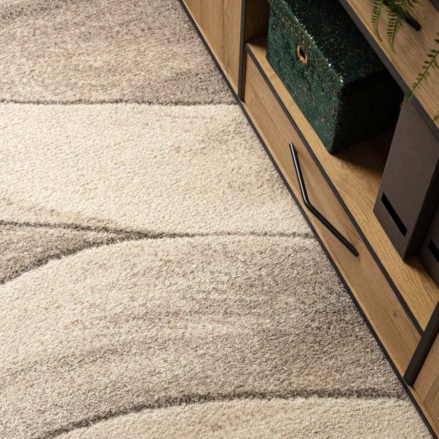 Koberec Fusion 1617 beige/cream působí jako jemná hra světla a stínu. Pískově béžové a hnědé tóny se vlní v elegantních pruzích, které připomínají klidné pohyby písečných dun nebo tekoucí vodní hladiny. Díky střiženému polypropylenovému vlasu je měkký na dotek a přitom praktický na údržbu. Precizní obšití po celém obvodu zajišťuje, že si koberec uchová svůj tvar i při každodenním používání. Skvěle se hodí do obývacího pokoje či ložnice, kde vnese hřejivou a harmonickou atmosféru.