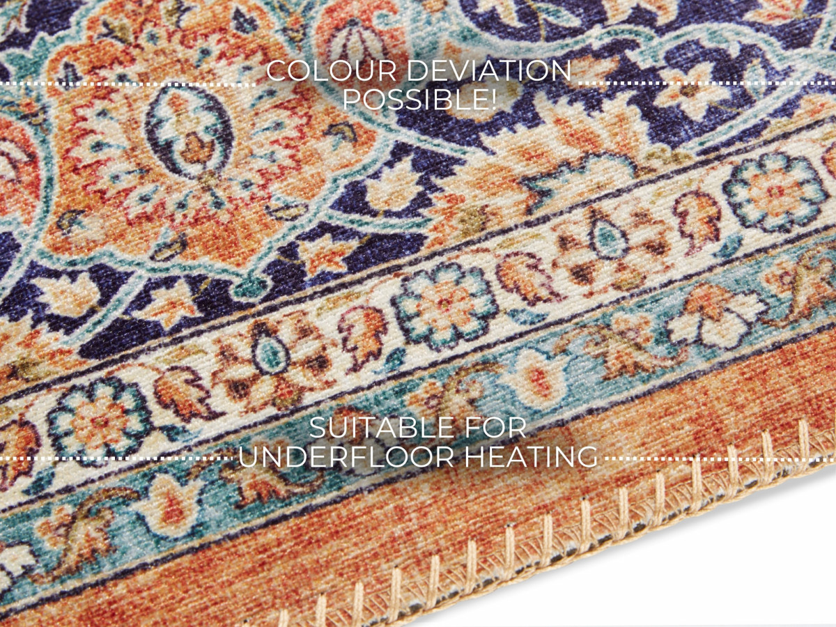 Sháníte koberec s tradičním orientálním vzorem, který se ale bude vyjímat i v moderním interiéru? Pak je pro Vás ideální do oranžova laděný kusový koberec Imagination 104215 z kolekce Elle Decoration se vyrábí z měkkého polyesterového vlákna. Tento orientální koberec vyniká nejen atraktivním vzorem, ale také praktickými vlastnostmi, mezi které patří bezvlasý pro snadnou údržbu, obšití na všech stranách, či možnost pokládky na vytápěné podlahy. Hodí se např. do obývacích pokojů, ale využitelný je i v jiných interiérech.