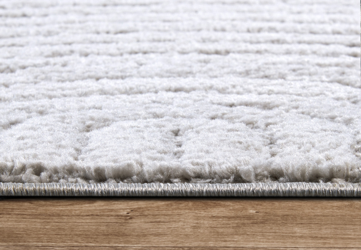 Moderní koberec v elegantní bílé barvě je z měkkého polyesteru, který je nejen příjemný na dotek, ale také odolný a snadno udržovatelný. Díky střiženému vlasu a 3D motivu koberec působí luxusním dojmem a přináší do interiéru unikátní texturu. Rubová strana je opatřena latexem, což zajišťuje stabilitu na podlaze. Můžete ho bez obav použít na podlahové vytápění, a díky svým izolačním vlastnostem efektivně udržuje teplo. Navíc je opatřen certifikátem Oeko-Tex, který garantuje jeho zdravotní nezávadnost.