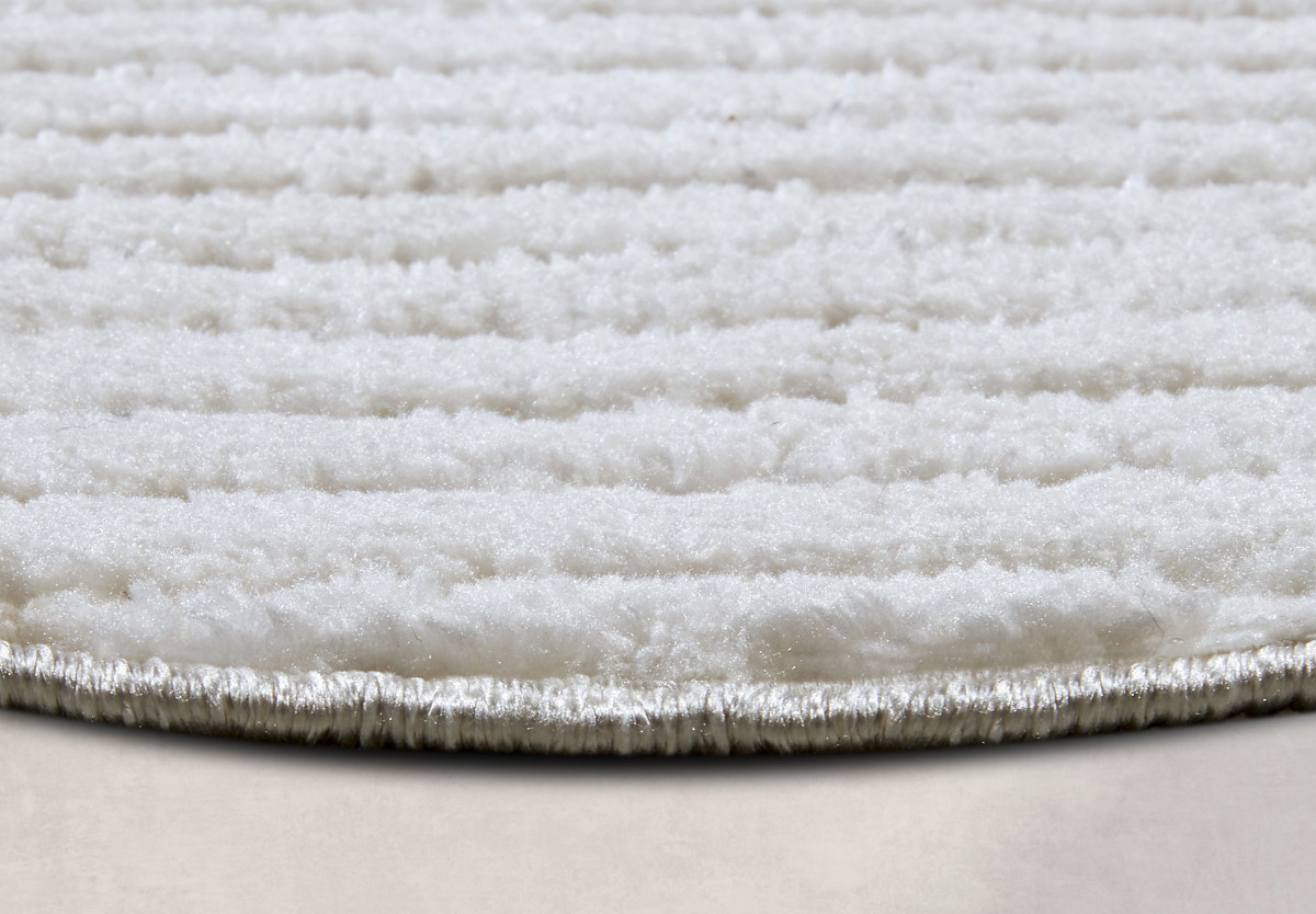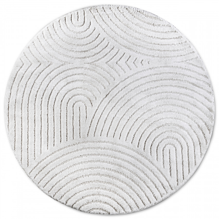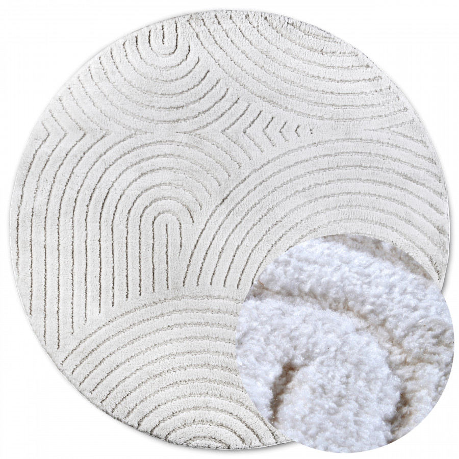 Moderní kruhový koberec v elegantní bílé barvě je z měkkého polyesteru, který je nejen příjemný na dotek, ale také odolný a snadno udržovatelný. Díky střiženému vlasu a 3D motivu koberec působí luxusním dojmem a přináší do interiéru unikátní texturu. Rubová strana je opatřena latexem, což zajišťuje stabilitu na podlaze. Můžete ho bez obav použít na podlahové vytápění, a díky svým izolačním vlastnostem efektivně udržuje teplo. Navíc je opatřen certifikátem Oeko-Tex, který garantuje jeho zdravotní nezávadnost.