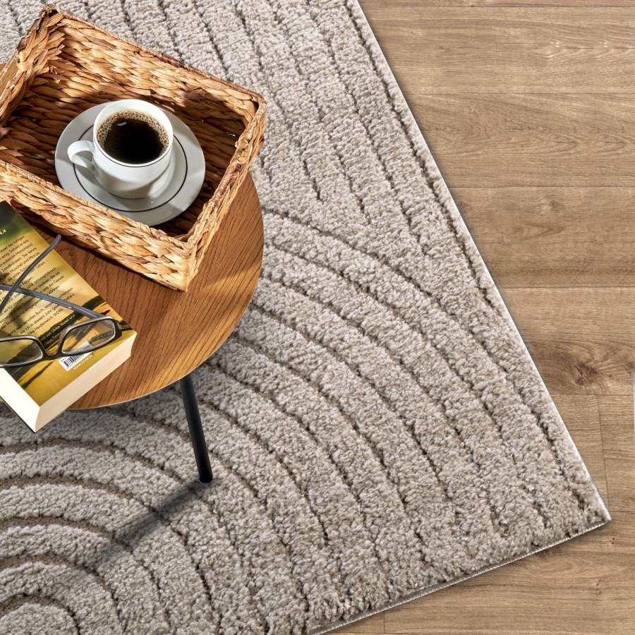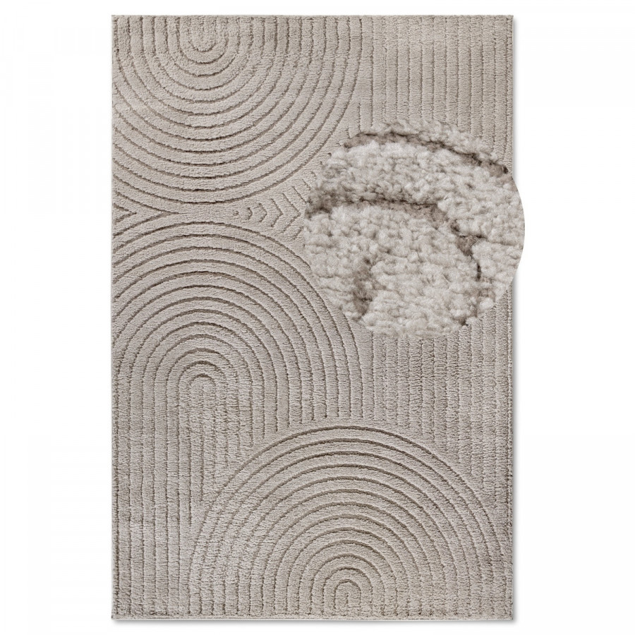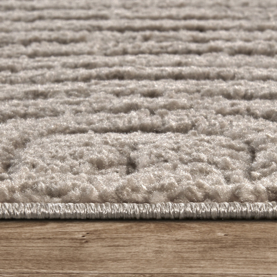 Šedo-béžový koberec vnese do vašeho domova teplo a útulnost. Je vyroben z měkkého polypropylenu, který je příjemný na dotek a zároveň odolný, což zaručuje dlouhou životnost. Díky střiženému vlasu a elegantnímu 3D designu se koberec snadno přizpůsobí různým interiérovým stylům. Jeho barva vytváří harmonickou atmosféru a dodává prostoru pocit klidu. Koberec je také vhodný pro použití na podlahové vytápění, a díky svým izolačním vlastnostem účinně udržuje teplo.