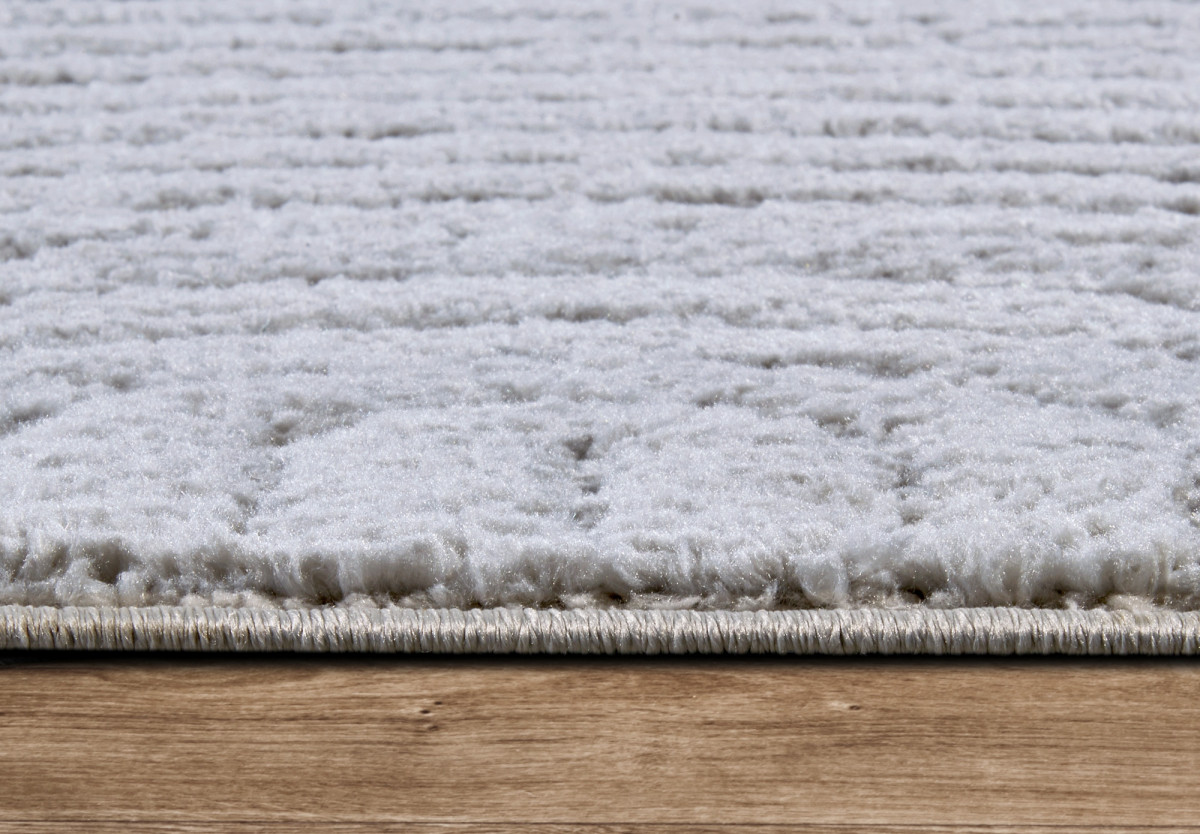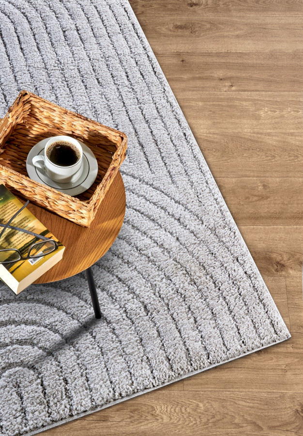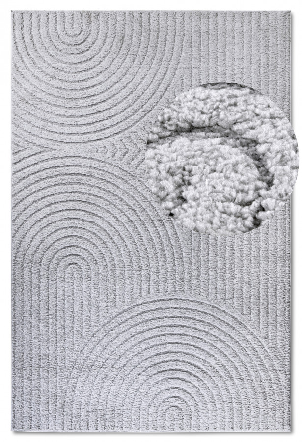 Moderní koberec ve světle šedé barvě je vyroben z vysoce kvalitního polyesteru, který poskytuje nejen luxusní pocit na dotek, ale také skvělou odolnost a snadnou údržbu. Díky jemnému střiženému vlasu koberec přinese do interiéru elegantní a sofistikovaný vzhled, zatímco jeho neutrální odstín se snadno kombinuje s různými dekorativními prvky. Rubová strana je vybavena protiskluzovým latexem, což podporuje stabilitu na podlaze. Koberec je navržen tak, aby byl kompatibilní s podlahovým vytápěním, a jeho izolační vlastnosti efektivně udržují příjemné teplo v místnosti.