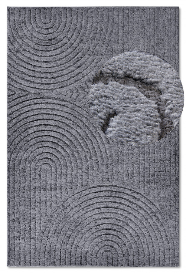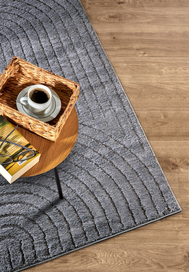 Elegantní antracitově šedý koberec je vyroben z kvalitního polyesteru, který zajišťuje nejen příjemný pocit na dotek, ale také vysokou odolnost a snadnou údržbu. Jeho tmavá barva dodává prostoru moderní a sofistikovaný vzhled, přičemž skvěle ladí s různými interiérovými styly. S jemným střiženým vlasem a decentními 3D vzory koberec vytváří atraktivní texturu, která zaujme každého návštěvníka. Rubová strana je z latexu, což podporuje stabilitu na podlaze. Tento koberec je také ideální pro použití na podlahovém vytápění, neboť jeho izolační vlastnosti efektivně udržují teplo.