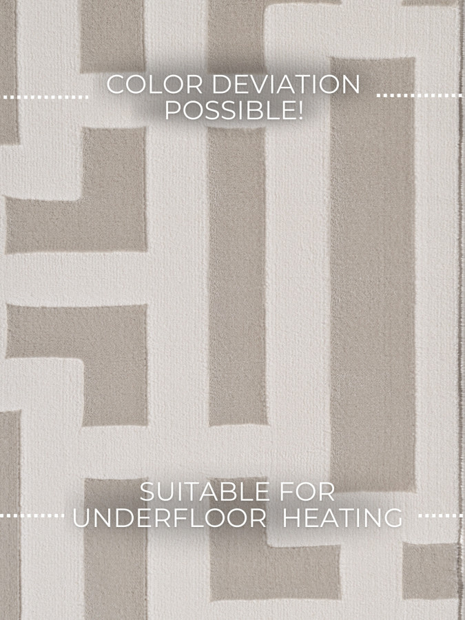Koberec v jemných světle béžových odstínech zaujme svým originálním geometrickým motivem, který prostoru dodá moderní nádech. Decentní barevné ladění jej činí univerzálním doplňkem do různých stylů interiérů. Díky středně vysokému vlasu nabízí příjemnou měkkost a komfort, což oceníte zejména v obývacím pokoji či ložnici. Praktické vlastnosti, jako je kompatibilita s podlahovým topením a robotickými vysavači, z něj činí nejen estetický, ale i funkční prvek domova.