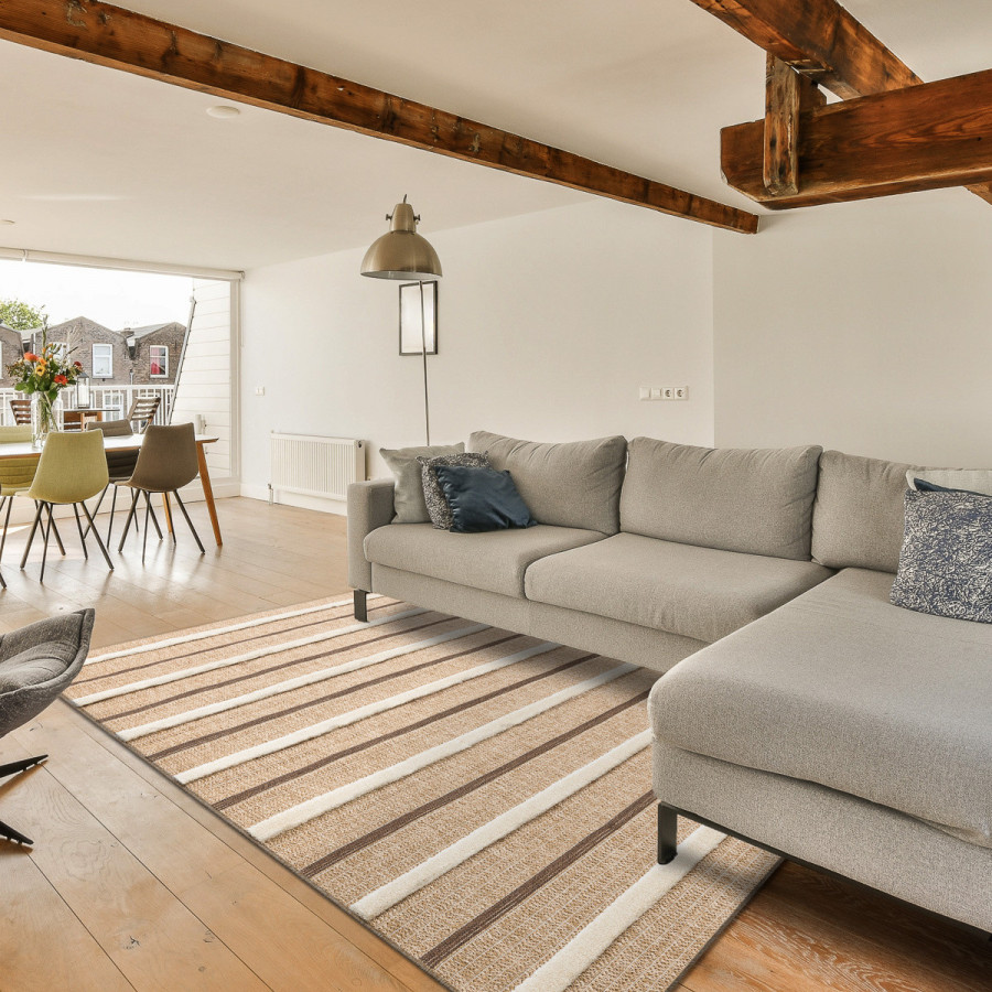 Koberec Spark 0686A beige/cream působí na první pohled velmi přirozeně a harmonicky. Jeho základ tvoří hřejivý béžový podklad, na kterém se pravidelně střídají světlé a tmavší pruhy. Výsledek působí decentně a elegantně, ale zároveň dodává prostoru rytmus a lehkou dynamiku. Vyrobený je z polypropylenu se soft střiženým vlasem, díky čemuž je krásně měkký a příjemný na dotek. Koberec má také certifikát OEKO-TEX, který garantuje zdravotní nezávadnost, a po celém obvodu je precizně obšitý. Skvěle zapadne do obývacího pokoje i studentského pokoje, kde vnese do interiéru klidnou atmosféru a opticky ho sjednotí. Je ideální pro ty, kdo hledají koberec, který se snadno kombinuje s nábytkem a barvami stěn a přitom působí elegantně a útulně.