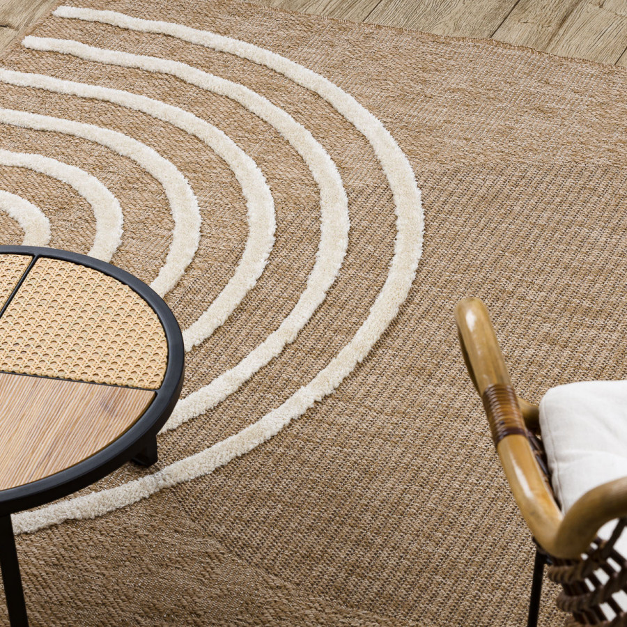 Kusový koberec Spark 0688A beige/cream si pohrává s geometrií a minimalismem. Na přírodně béžové barvě se vyjímají půlkruhové oblouky v krémové barvě, které působí jako stylizované duhy a vytvářejí na ploše zajímavou symetrii. Výsledek je moderní, čistý a velmi elegantní. Materiál tvoří polypropylen se soft střiženým vlasem, díky čemuž je koberec příjemně měkký, praktický na údržbu a odolný vůči běžnému používání. Samozřejmostí je certifikát OEKO-TEX, který potvrzuje zdravotní nezávadnost, a precizní obšití po celém obvodu. Svým designem nejlépe zapadne do boho nebo skandinávského interiéru, kde krásně propojí přírodní tóny s moderní estetikou a vytvoří útulnou atmosféru v obývacím pokoji i do kuchyně.