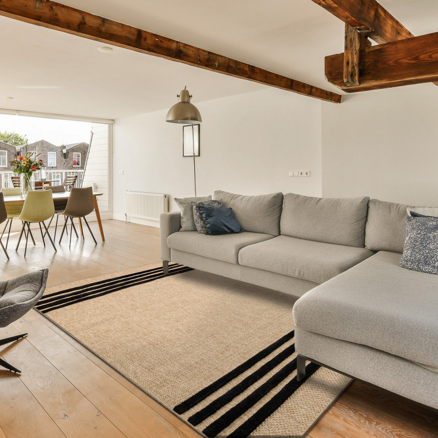 Spark 0689 beige/black působí nadčasově a elegantně díky svému jednoduchému, ale výraznému designu. Béžový základ doplňují černé pruhy na kratších stranách, které mu dodávají moderní charakter a jemný nádech luxusu. Díky neutrální barevnosti se snadno kombinuje s nábytkem a interiérovými doplňky. Vyroben je z polypropylenu se soft střiženým vlasem, takže je měkký, příjemný na dotek a zároveň odolný vůči každodenní zátěži. Samozřejmostí je i certifikát OEKO-TEX, který potvrzuje zdravotní nezávadnost, a pečlivé obšití po celém obvodu.