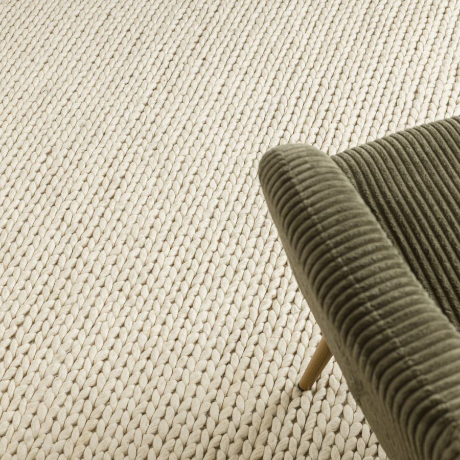 Kusový koberec Tahar 99004B cream v krémové barvě zaujme svou jednoduchou, ale působivou strukturou. Je ručně tkaný z kvalitní vlny, která je na dotek měkká a zároveň pevná. Povrch tvoří husté, vodorovně vedené copánkové pruhy, které vytvářejí výraznou texturu s moderním, přesto přirozeným vzhledem. Tento vzor dodává koberci plastický efekt a vynikne zejména v interiéru, kde dominují přírodní materiály a neutrální tóny. Koberec je ideální do ložnice, obýváku i pracovny, tlumí hluk, izoluje teplo a díky ruční výrobě má každý kus originální charakter. Vlna navíc přirozeně odpuzuje nečistoty a je dlouhodobě odolná.