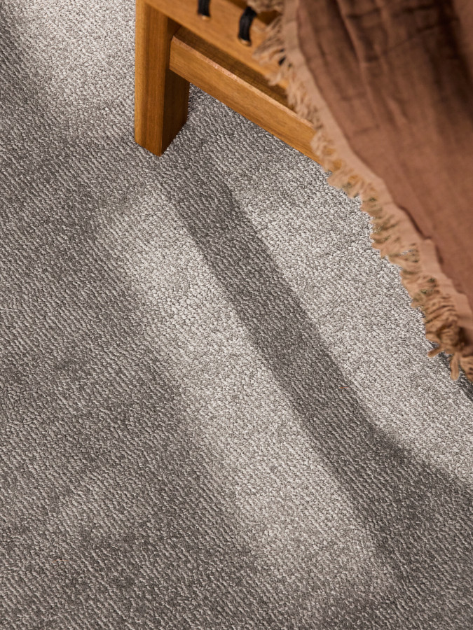 Světle šedý koberec v nepravidelném kruhovém tvaru působí svěže a do prostoru vnáší jemný dotek hravosti. Zvýrazněné okraje plynule kopírují jeho křivky a dodávají celému designu decentní, ale působivý detail. Směs vlny a nylonu vytváří povrch, který je měkký při došlapu a zároveň dostatečně odolný pro každodenní používání. Spojení smyčkové struktury a nízkého střiženého vlasu dodává moderní texturu, zatímco přirozená hřejivost a tlumení zvuku podporují útulnou, příjemně uvolněnou atmosféru v každé místnosti.