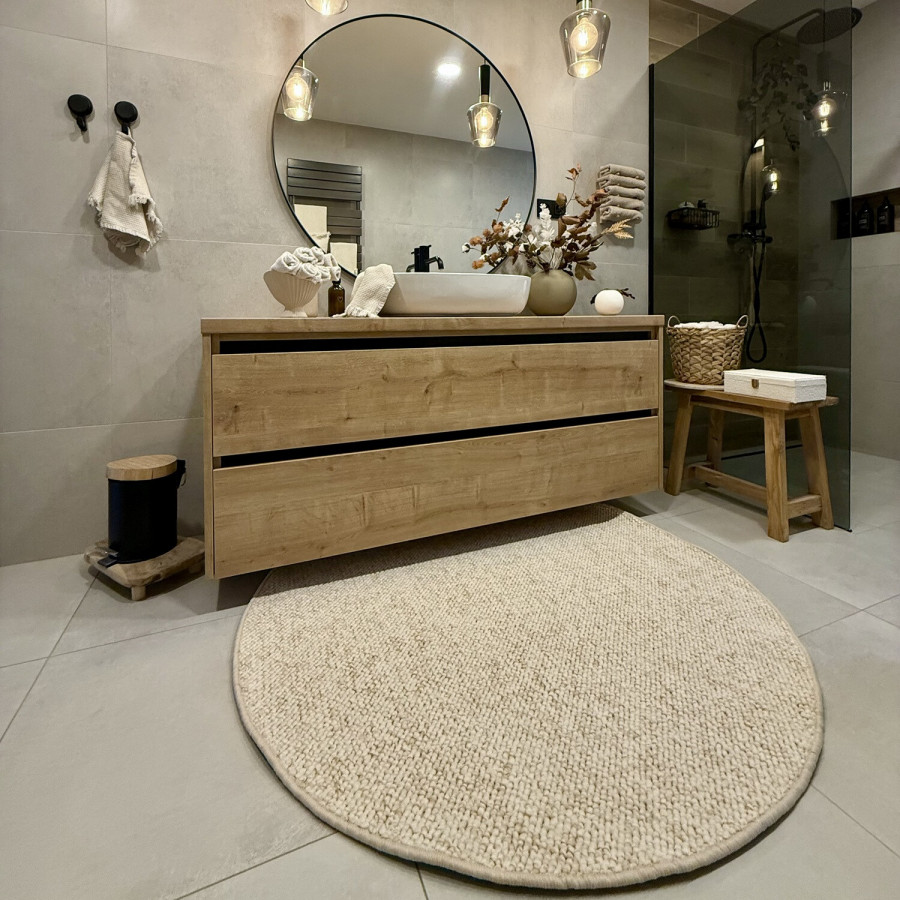 Seznamte se s naším kouzelným béžovým kruhovým kobercem. Tento kousek vypadá jako vyrobený z jemné vlny, ale díky odolnému polypropylenu se o něj nemusíte bát – údržba je hračka. Jeho příjemná béžová barva rozzáří každý kout a kulatý tvar dodá místnosti hravý šmrnc. Dokonale obšité okraje zaručují, že bude vypadat skvěle, ať už ho umístíte pod konferenční stolek nebo třeba do čtecího koutku. Když se po něm projdete, je to jako kráčet po slunečním paprsku – je měkký, hřejivý a stylový.
