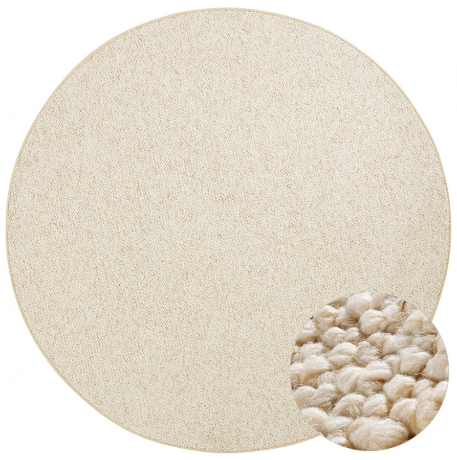 Myslíte si, že tento krémově bílý kruhový koberec je vyroben z drahé vlny? Nejste sami, ale pravdou je, že je vyroben z praktického a snadno udržovatelného polypropylenu. Tento nádherný koberec přináší do každého prostoru sofistikovanost a styl, přičemž jeho jemná barva dokonale ladí s různými interiérovými koncepty. Jeho kruhový tvar je ideální pro oživení prostoru, ať už ho umístíte do obývacího pokoje, ložnice nebo pracovny. Vytváří útulnou atmosféru, která zve k odpočinku a relaxaci. Pečlivě obšité okraje zajišťují, že koberec vydrží každodenní používání, zatímco měkký povrch vám poskytne pocit pohodlí, jako byste kráčeli po nadýchaném obláčku.
