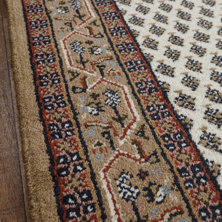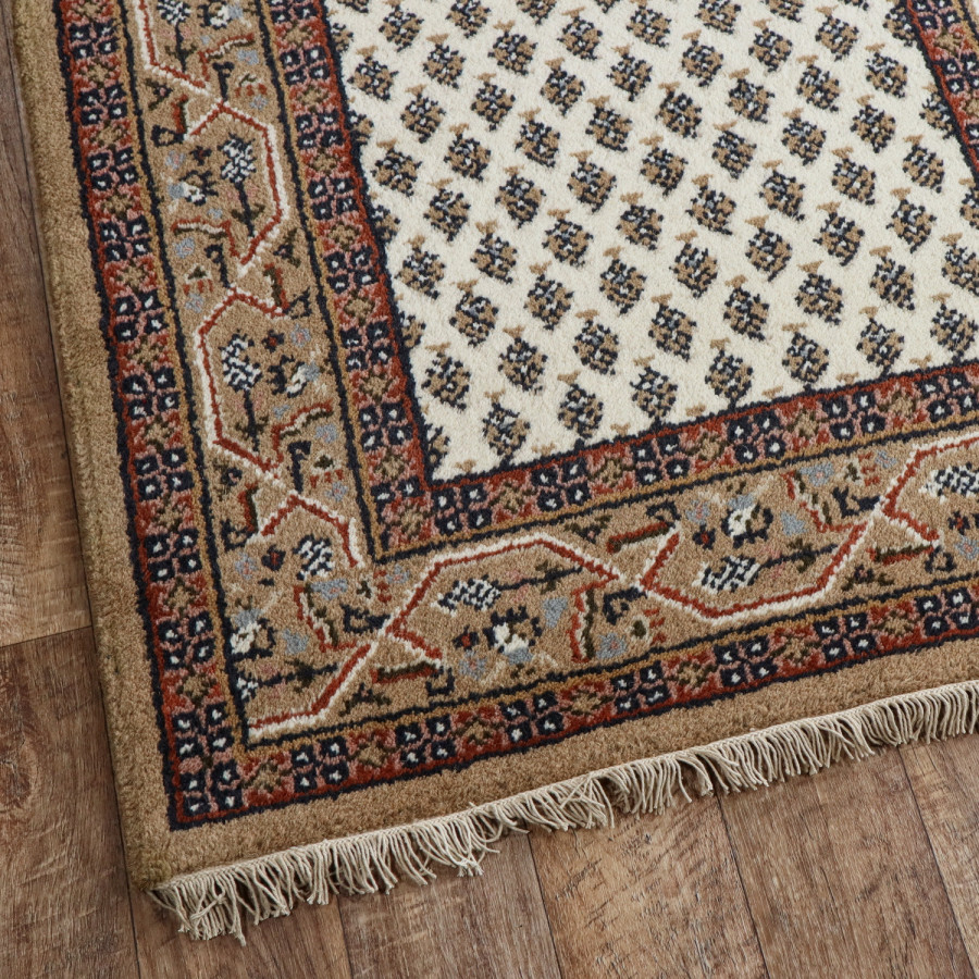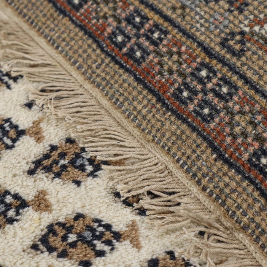 Představte si pokoj, do kterého vstoupíte a okamžitě cítíte klid, teplo a dotek řemesla s duší. Právě takový dojem umí vytvořit kusový koberec Mir cream, ručně tkaný kousek z daleké Indie, v krémovém tónu s jemným hnědým podtextem. Je utkán ze 100% ovčí vlny, která v sobě nese přirozenou hebkost i odolnost. Když po něm přejdete bosou nohou, pochopíte, proč se říká, že vlna je materiál s pamětí a duší. Vlas je pečlivě střižený, třásně na kratších stranách přidávají špetku elegance, zatímco decentní obšití na delších stranách neruší rytmus vzoru. Ornamentální motiv, typický pro orientální tkaniny, vdechne prostoru charakter a nadčasovost. Hodí se do interiéru, kde chcete zpomalit čas, do ložnice, pracovny i tichého čtecího koutku.