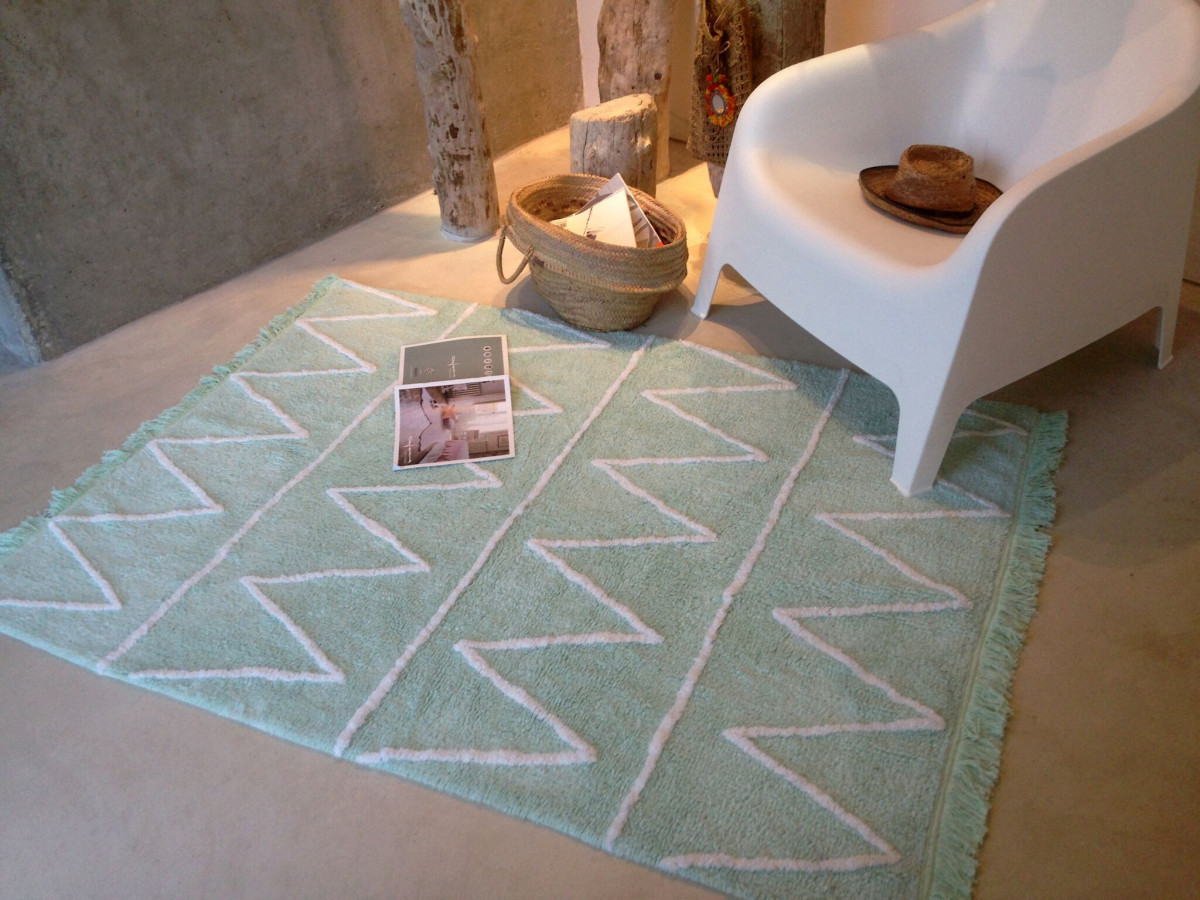 Příjemný kusový koberec v mentolově zelené barvě, který lze jednoduše a bezpečně vyprat v pračce. Kromě toho se může pochlubit i vysokou kvalitou, nízkou hmotností a příjemně měkkým povrchem. Jedná se o skvělého společníka do dětských i obývacích pokojů či ložnic. Koberec Hippy Mint byl ručně utkán z kvalitního bavlněného vlákna přímo v Indii. Lze ho skvěle a účinně kombinovat s jinými koberci nebo kobercovými doplňky.