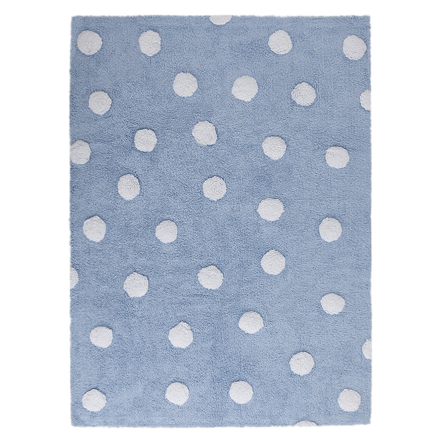 Hledáte-li pěkný kusový koberec do dětského pokoje, pak rozhodně nepřehlédnětě bavlněný koberec Polka Dots Blue-White. Nejenže skvěle vypadá, ale také se velmi snadno udržuje! Stačí ho pouze strčit do pračky a jednoduše vyprat, takto jednoduché to je. Kromě toho se ale může tento stylový puntíkovaný koberec pochlubit i vysokou kvalitou, příjemně měkkým povrchem a snadnou kombinovatelností s ostatními produkty z této řady.